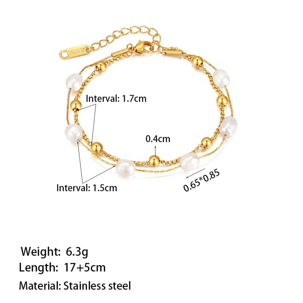 Luxury Double Layer Pearl Bracelet - Stainless Steel Jewelry for Women, Hypoallergenic Gift & Party Bangles Chain Accessories