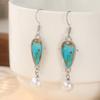 Vintage Water Drop Shaped Inlaid Synthetic Turquoise Imitation Pearl Dangle Earrings for Women's Pendant Banquet Jewelry