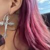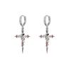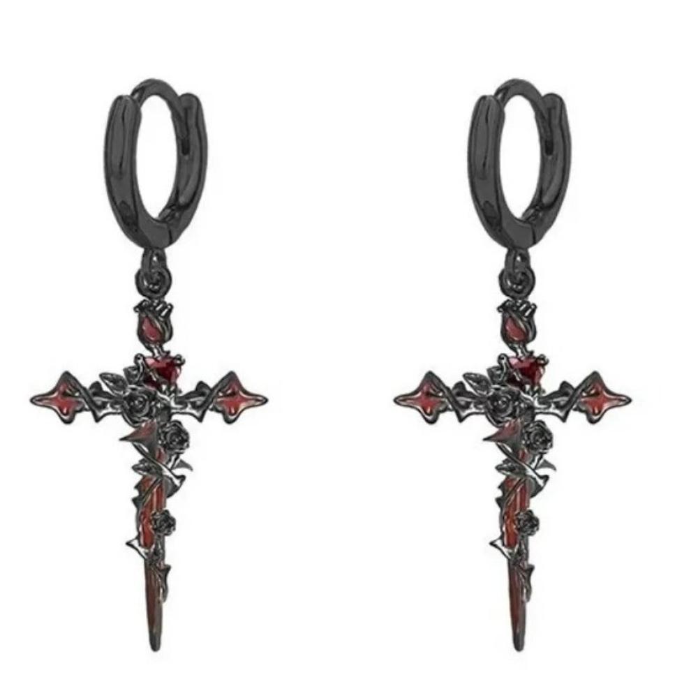 Hoop Gothic Cross Earrings with Thorn Rose Drop, Punk Rock Metal Ear for Men Women, Unisex Vintage Jewelry Gift