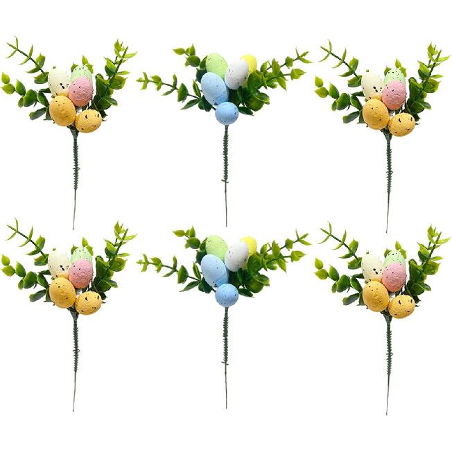 6 Pack Artificial Easter Egg Picks 8.7inch Easter Egg Tree Branches Spring Floral Picks Easter Stems for Spring Party Flower Arrangement Wreath Decor