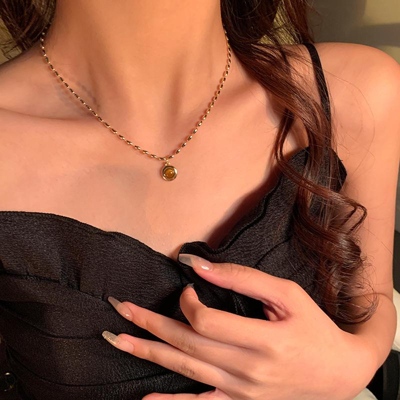 Maillard imitation tiger's eye stone pendant necklace women's retro sweet cool collarbone chain personalized accessories