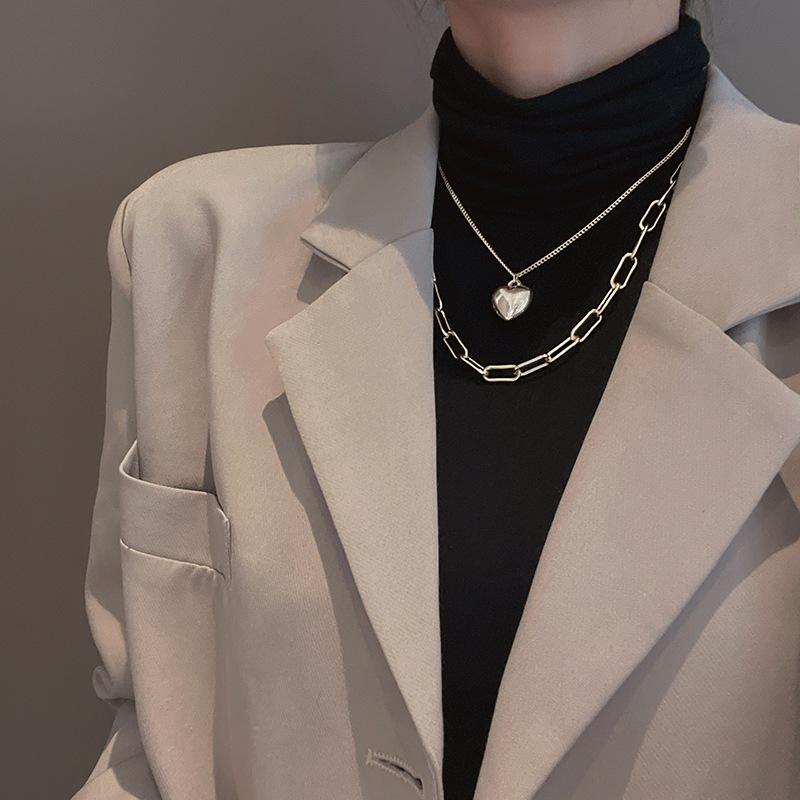 European and American double-layered wearing golden love necklace female cold wind exaggerated personality sweater chain Internet celebrities