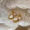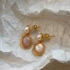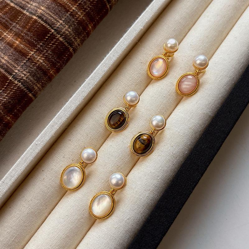 S925 sterling silver needle Maillard pearl earrings women's retro relaxed temperament natural tiger's eye stone earrings