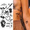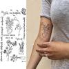 Tattoo Sticker, Plain Flower English, Letter Flower Butterfly Line Transfer Sticker Tattoo