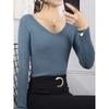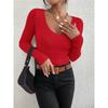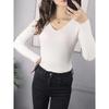 Women Solid Rib Knit V Neck Stripe Pull Sweater Femme Long Sleeve Pullover Jersey Tops Fashion Clothes
