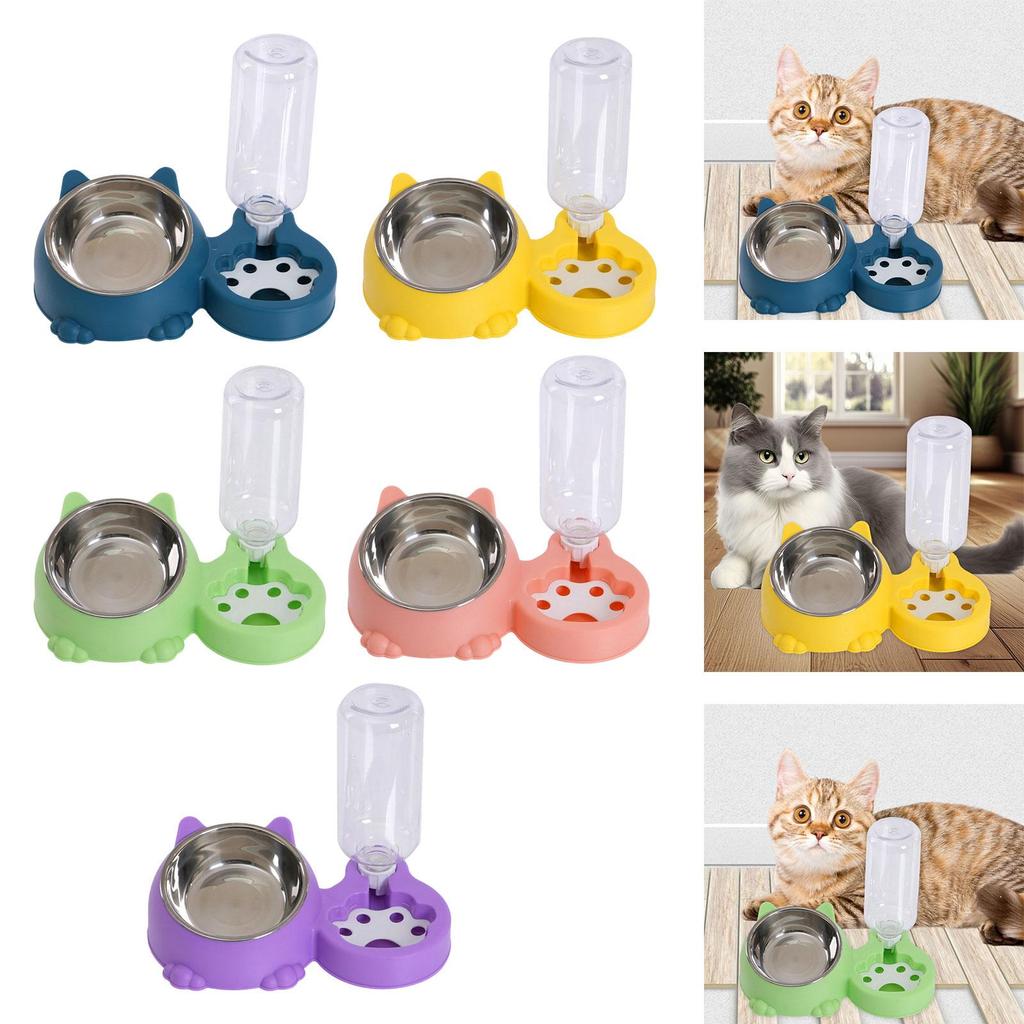 Tilted Cat Bowl with Automatic Water Bottle, Unique Dog Bowl with Automatic