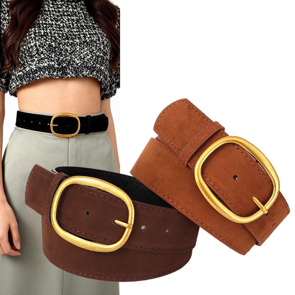 Pin Buckle Suede Leather Belt Luxury Design Wide Waistband Women Waist Belt Coat Skirt Decoration