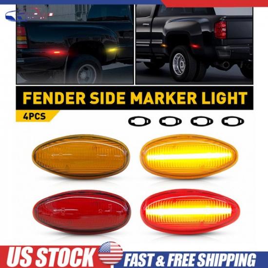 4x Amber/Red LED Side Marker Corner Lights For 1999-2014 GMC Sierra Dually Bed