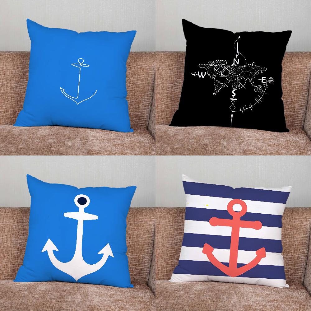 Anchor Compass Nautical Sailor Pillow Case For Home Bedroom Car Office Decoration Living Room Sofa Cushion Cover Suitable