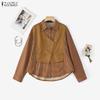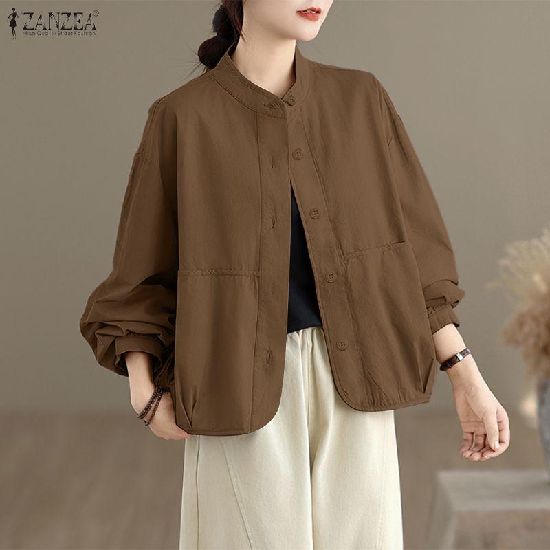 ZANZEA Bluză lejeră cu mânecă lungă, cu guler în picioare, pentru femei