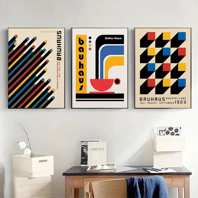 Minimalist Bauhaus Eyes Canvas Print Mid Century Bauhaus Music Vinyl Geometric Wall Art Poster for Modern Living Room Home Decor