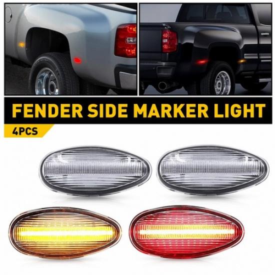4PC Clear Lens LED Side Marker Light For 01-14 Silverado 2500 3500 HD Dually