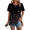 Women's Casual Fashion Round Neck Floral Printed Pleated Short Sleeve T,shirt Top