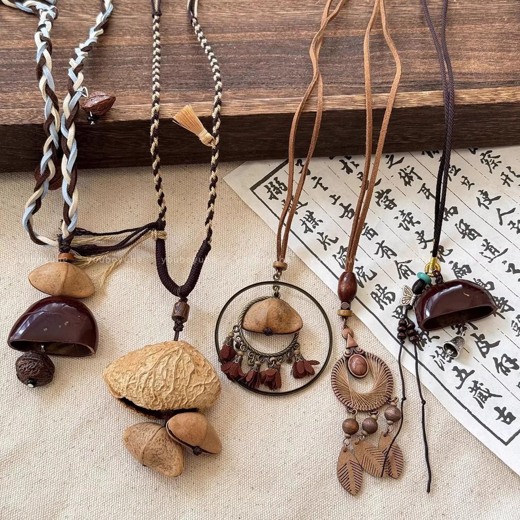 Zen ethnic style plant nut shell braided rope necklace women's new Chinese niche design sweater chain daily accessories
