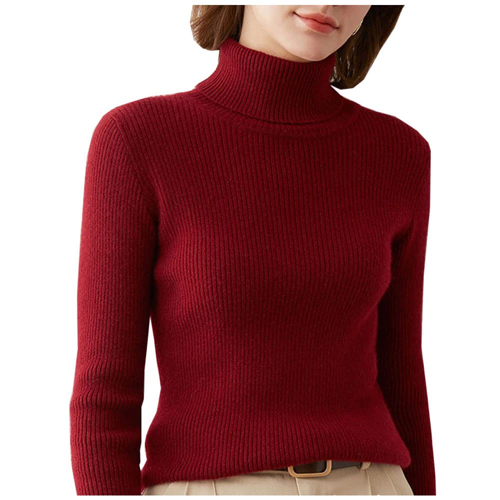 ZUEVI Turtleneck Long Sleeve Knit Solid Plus Wine Red Women's Sweater, Color, Spring/Autumn, Stretch, Sizes, (ZJP0049W-L)