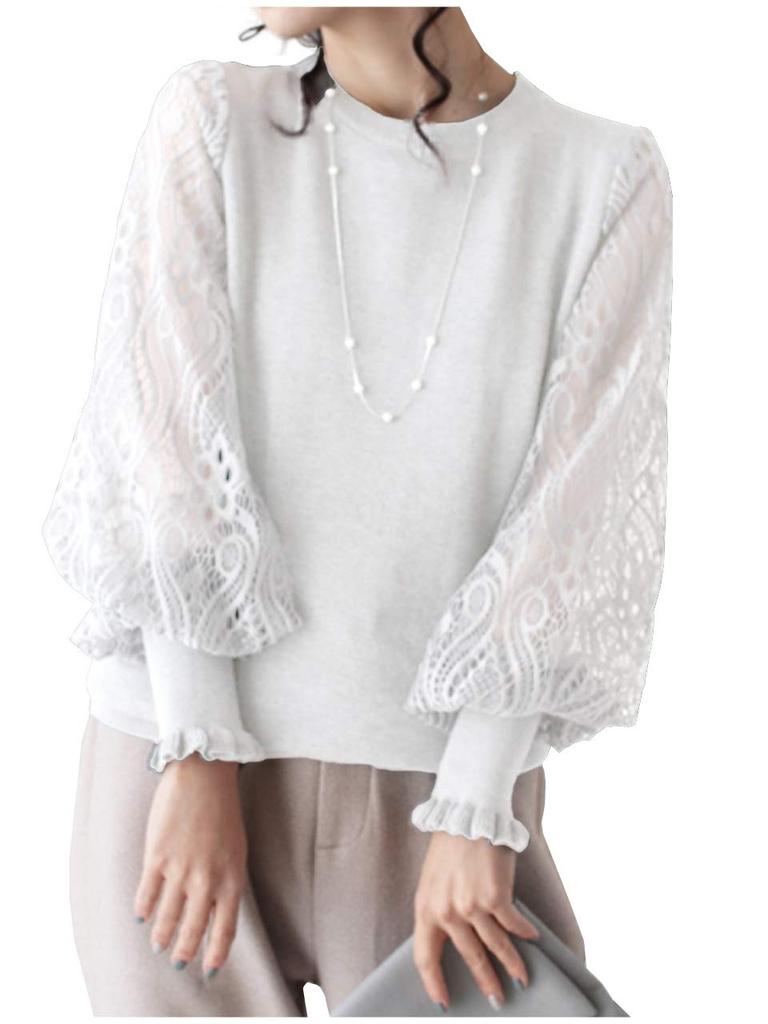 [ONE UMB] [Premium Line] Lace Puff Sleeve Knit Blouse Top, Sheer, Long Sleeve, Sizes S to L, Women's, Gray, Black, White, M. The [Premium Line] is one of ONE UMB's most premium products. This high-quality and elegant model features careful stitching, comfort, texture, and color. This puff sleeve knit blouse exudes a feminine charm. The flowing lace puff sleeves offer a touch of elegance with just the right amount of sheerness. The voluminous sleeves also conceal the upper arms, creating a slimming effect. The slender wrists create definition and a slender, slender figure. The subtle ruffles on the cuffs flatter the hands, making this a truly premium piece. This piece exudes a sophisticated look, perfect for a wide range of occasions, from everyday wear to special occasions. The dense, smooth texture reduces the scratchiness typically associated with knitwear. The breathable knit material makes it suitable for a long season from autumn and winter to early summer. It has just the right amount of stretch and is comfortable to wear, making it perfect for remote work.