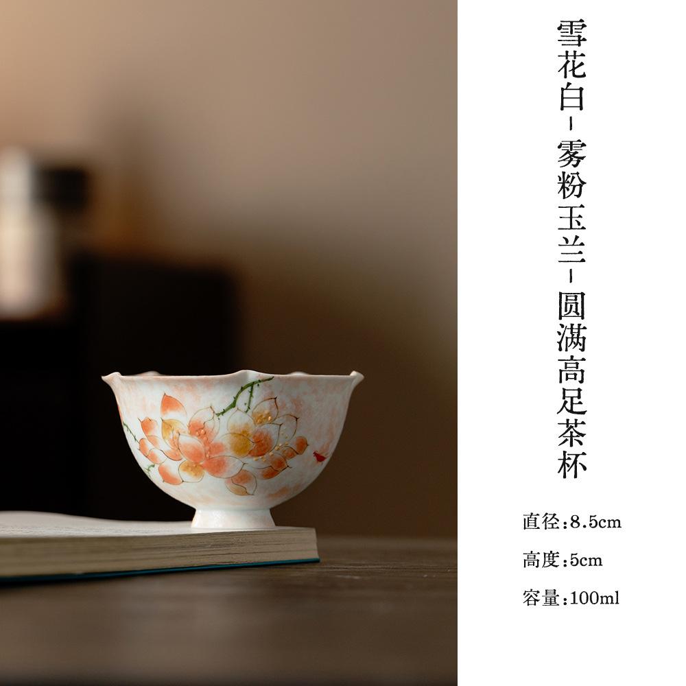 100ml Hand-painted Powder Magnolia Flower Mouth Teacup Aesthetic Tea Bowl Jug Tea-tasting Personal Cup Chazhan Master Cup Teaset