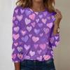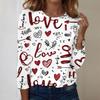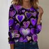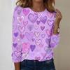 Women's Heart,shaped Printed Round,neck Loose Long,sleeved Top