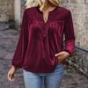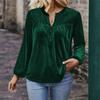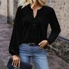 Women's Color V,Neck Casual Elegant Button Long,Sleeve Blouse
