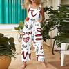 Women's heart,shaped printed casual loose retro overalls cotton and linen one,piece pants