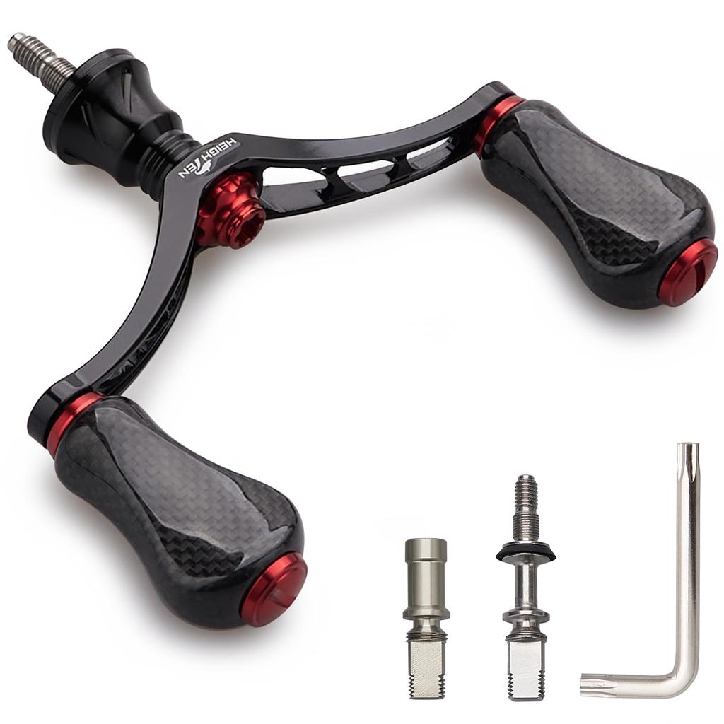 HEIGHTEN 80mm/98mm Reel Handle with 20mm/21mm Carbon Knob for Shimano and Daiwa Spinning Reels, Gourd Series (80mm - Black & Red) (932)