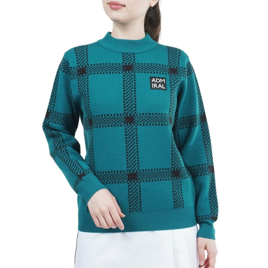 Admiral Golf ADLA287 Women's Windpane High Neck Knit Sweater, Blue-Green, Size L