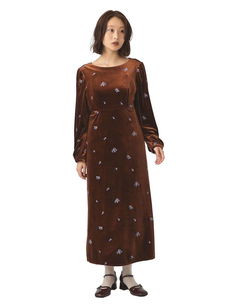 Ray Beams Women's Velvet Embroidered Dress, Brown 0