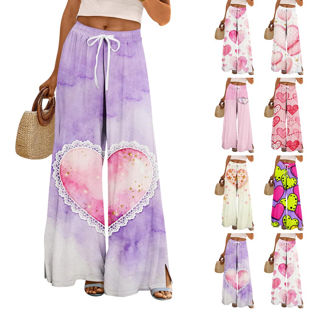 Pantaloni largi cu talie înaltă pentru femei, stil boho de vară, stil palazzo, cu imprimeu, casual, cu buzunare