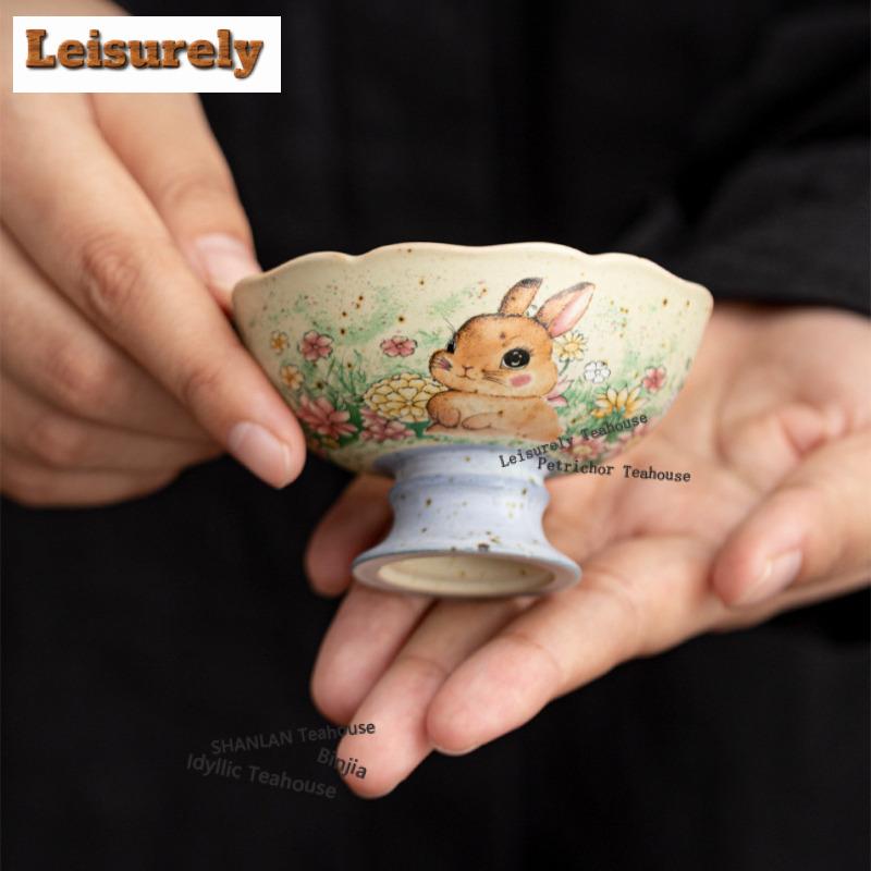 50ML Caramel Glaze Flower-picking High-feet Teacup Retro Tea Bowl Mug Tea-tasting Meditation Cup Jianzhan Master Cups Tableware