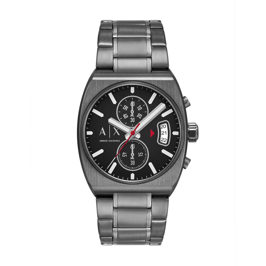 Watch Band: Durable gunmetal stainless steel bracelet with removable links for adjustable length.