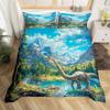 Kids Dinosaur Duvet Cover Twin Queen Bedding Set for Boys Teen Cartoon Jungle Dino Comforter Cover,3D Ancient Animal Quilt Cover