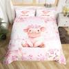 Cute Pig Duvet Cover Set Rose Flower Princess Bedding Set,Girls Women Room Decor,Cartoon Livestock Animal Rustic Comforter Cover