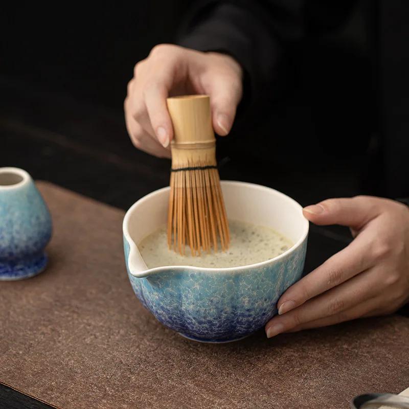 Handmade Kiln Transformation Glaze Matcha Bowl Set with Chasen Whisk Traditional Japanese Tea Ceremony Tools for Whisking Mixing