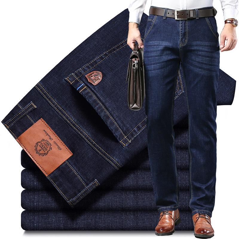 Pantaloni Casual din Denim Stretch cu Picior Drept pentru Bărbați, Pantaloni de Afaceri Fără Călcare pentru Domni de Vârstă Mijlocie