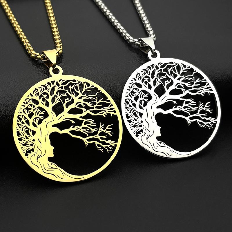 Tree Of Life Hair Chain Stainless Steel Silver Color Fashion Necklace For Women Men Nature Jewelry Accessory