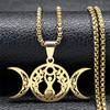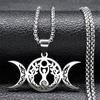 Triple Moon Goddess Luna Necklace Stainless Steel Silver Amulet Hecate Chain Jewelry for Women Men N9736S02