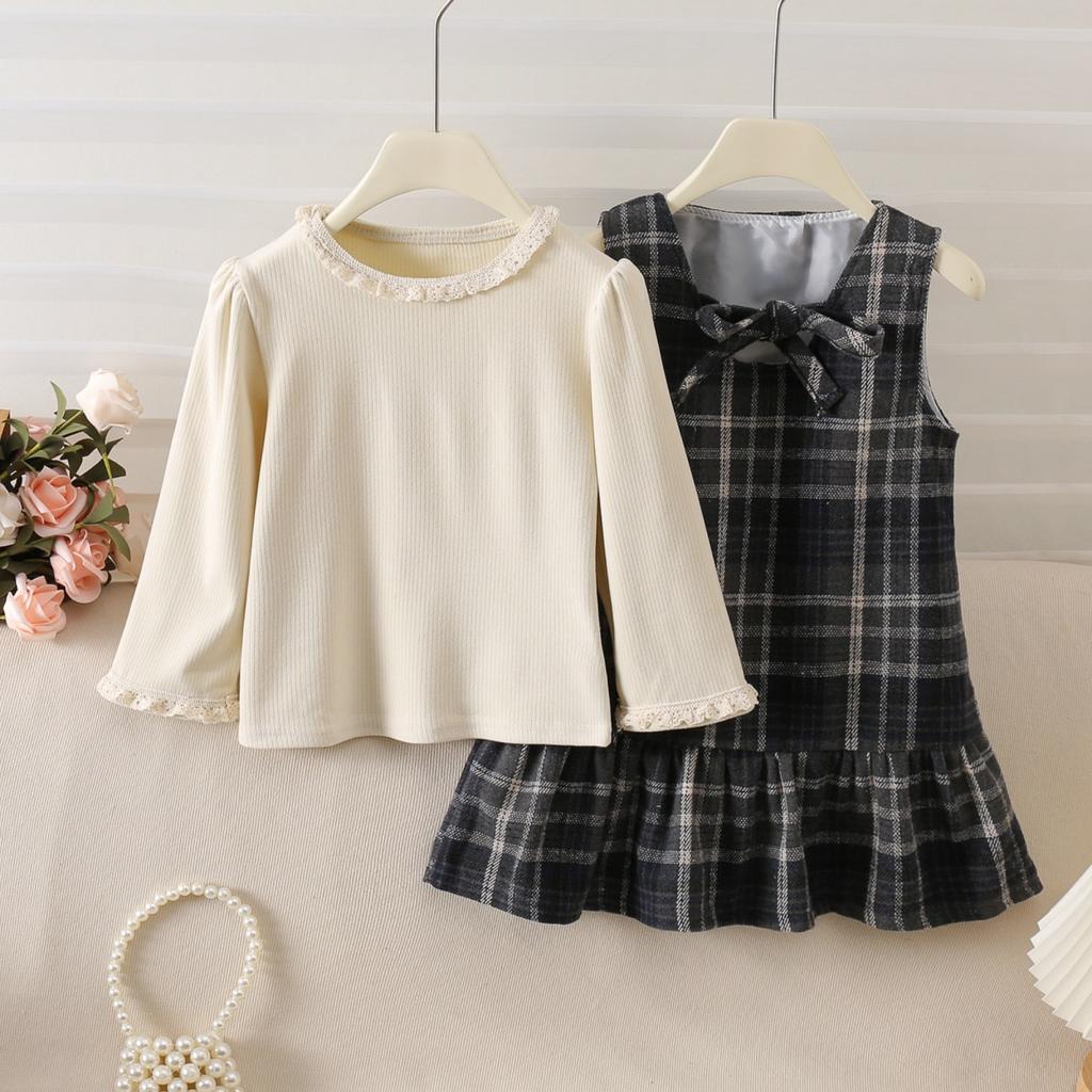 Girls' Outfit Spring and Autumn New Style Little Style Plaid Skirt Baby Outfit Skirt Children's Two-Piece Set