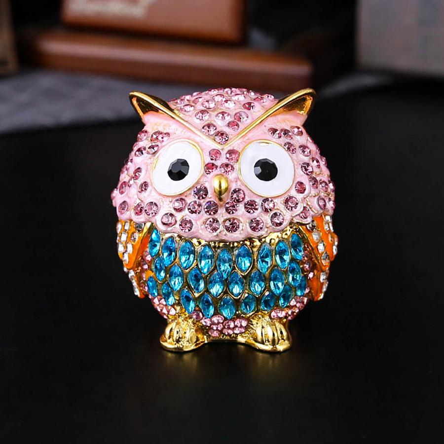 Full diamond metal owl jewelry box, stud earrings, ring storage, cute and cute, exquisite and small ornament storage box.