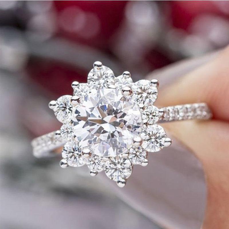 Milangirl Stiluri Mixte Inel Metalic Incrustat cu Strălucitoare Piatră de Cristal Strass Zirconiu în Formă de Floare de Zăpadă pentru Femei Nuntă