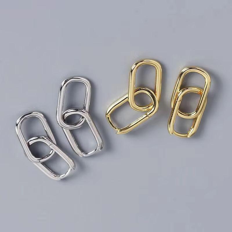 2026 New Women's Silver Geometric Hoop Earrings Simple Fashion Detachable Oval Accessory Gift 1 Pair