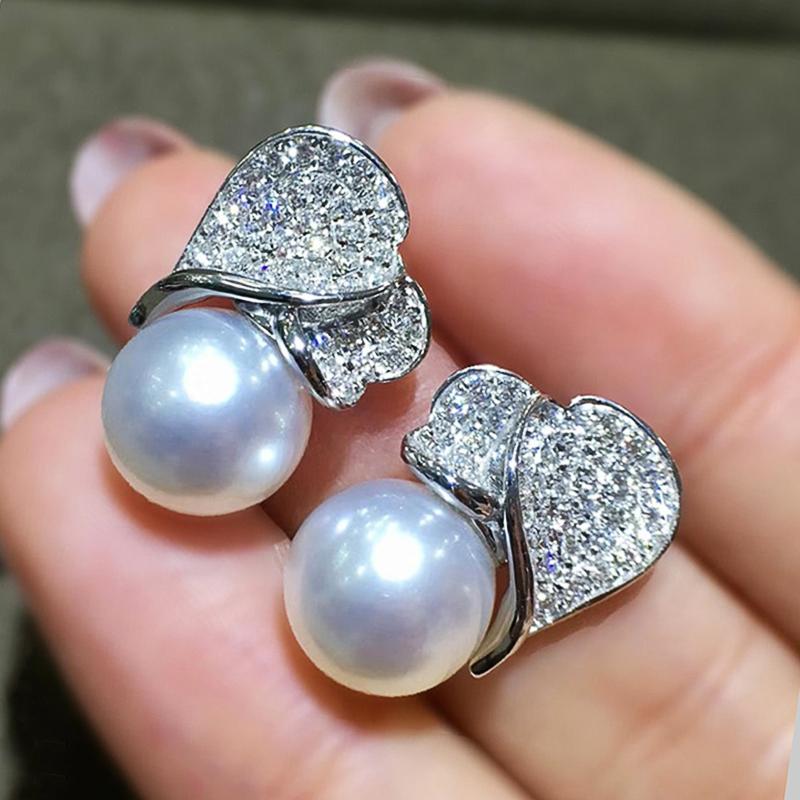 Huitan Bling Bling Imitation Pearl Stud Earrings Women Fashion Design Temperament Ear Accessories Wedding Party Female