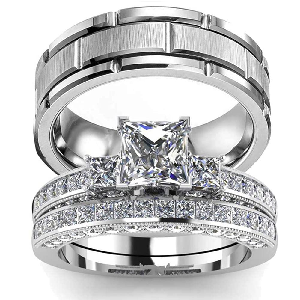 2023 Couple Rings Women Exquisite Rhinestones Zirconia Rings Set Simple Stainless Steel Men Ring Fashion For Lover Gifts