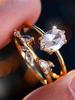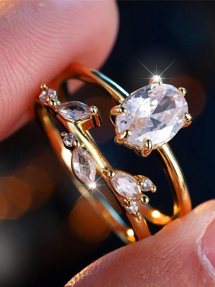 Crystal Female White Zircon Oval Stone Ring Set Fashion Vintage Gold Color Bridal Wedding Engagement For Women