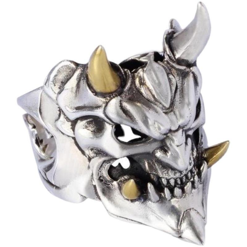 Retro Prajna Mask Ring For Men Punk Gothic Rock Hiphop Adjustable Open Ring Handmade Designer Biker Accessories Man Gift
