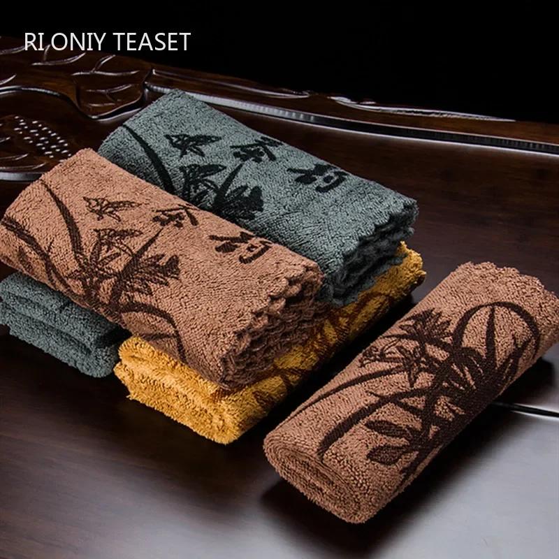 Chinese Flower Pattern Thickened Tea Towel Absorbent Water Rag Tea Napkins Cloth Table Teapot Coaster Tea Set Accessories