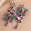 Silver Needle Retro Diamond-Studded Crystal Butterfly Flower Earrings: Asymmetrical Elegant Fashion for Women