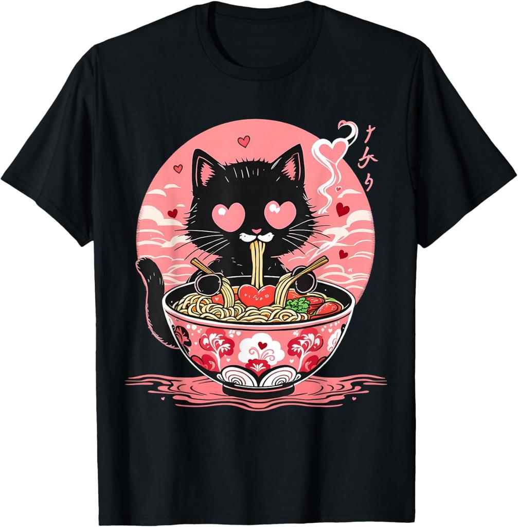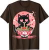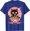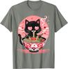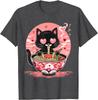Kawaii Black Cat Eating Ramen Anime Japanese Aesthetic Graphic Tee Men Women Daily Perfect for Foodies Cat Moms