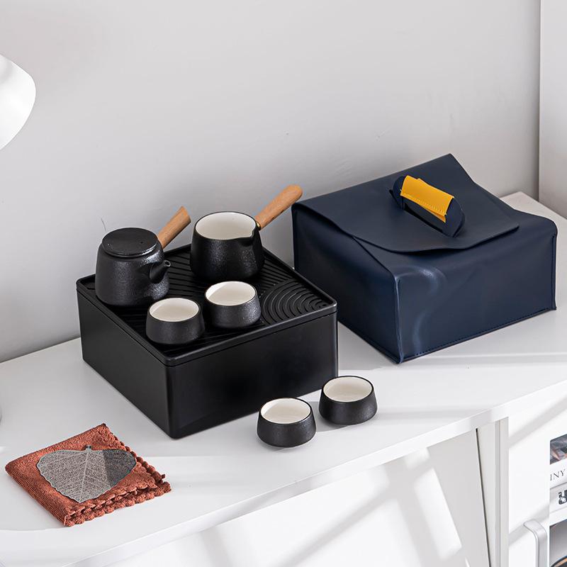 Black Ceramic Side Handle Teapot Travel Car Luxury Portable Cup Outdoor Storage Box Kung Fu Tea Set