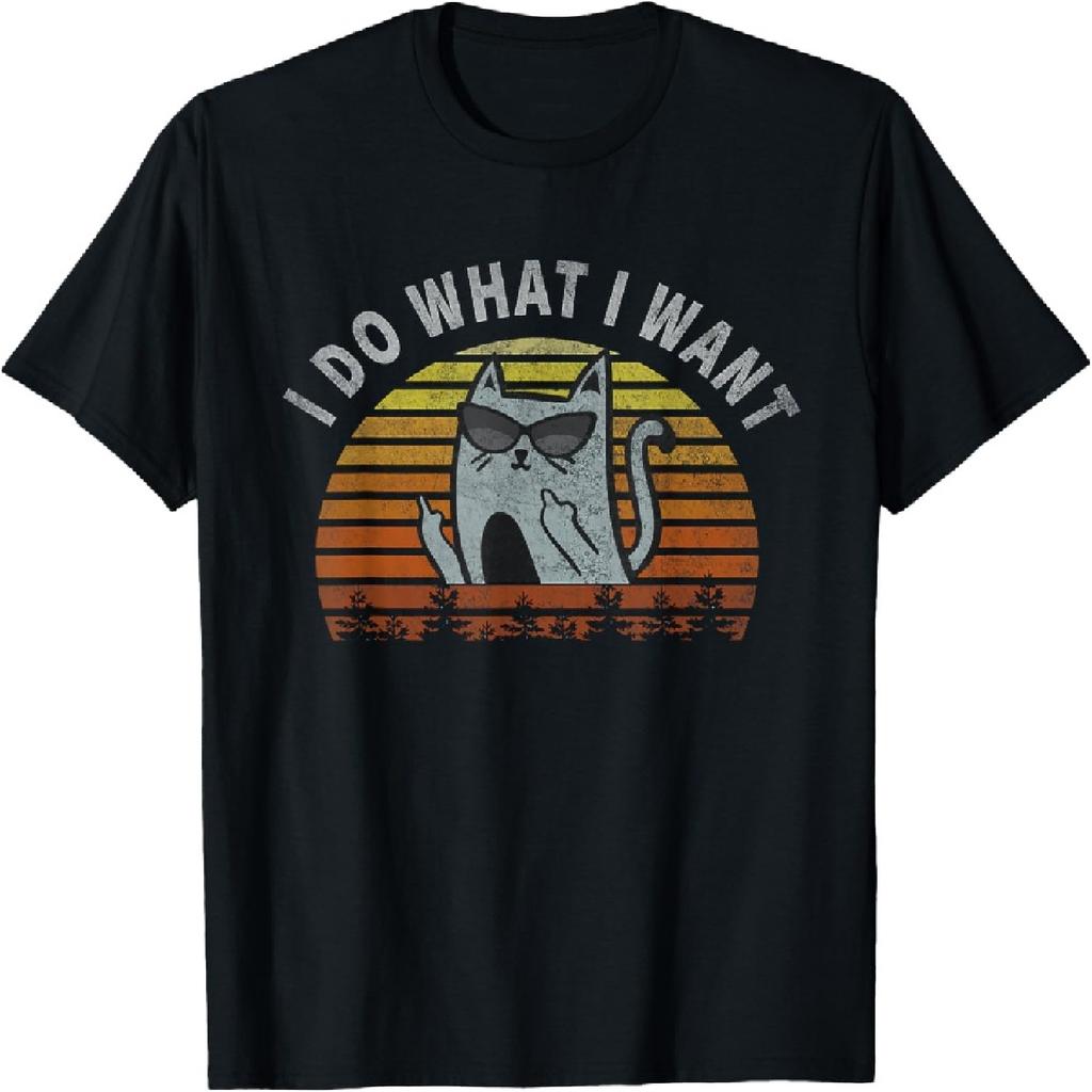 I Do What I Want Tee Funny Cat Middle Finger Vintage Retro T-Shirt for Men Women