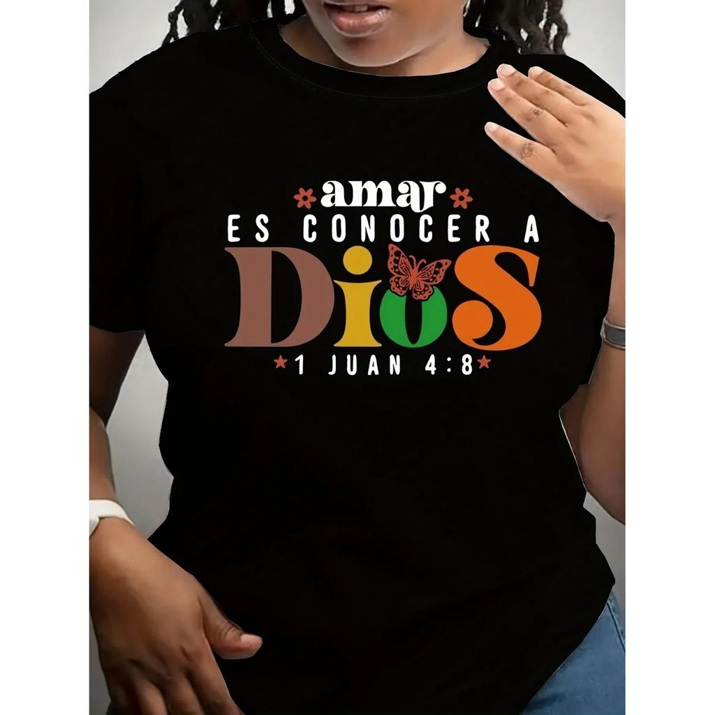 Amor Es Conocer a Dios Print T-shirt Girl Cartoon Unisex Tops Short Sleeve Streetwear Men Women Crew Neck Tees Female